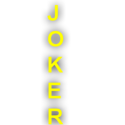 Vertical 'JOKER' text in a yellow neon style with a subtle drop shadow.