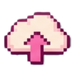 A pixel art cloud icon with a pink upward-pointing arrow, indicating an upload function.