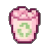 A pink pixel art icon of a trash can with a green recycle symbol.