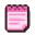A pink pixel art notepad icon with written lines.