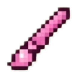 A pink pixel art paintbrush icon with a dark outline.