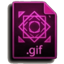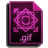 A dark purple GIF file icon featuring an abstract geometric graphic and ".gif" extension text.