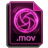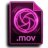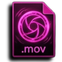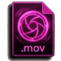 A dark purple MOV file icon featuring a glowing pink camera shutter symbol.
