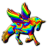 Icon with horizontal horn and 2 wings visible, in full rainbow array.