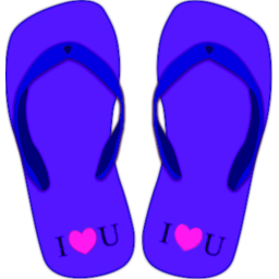 Colored thong sandals with "I♥U" heels.