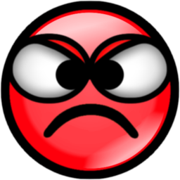 Grouchy Frowning Red Smiley with Big Angry Googly Eyes.
